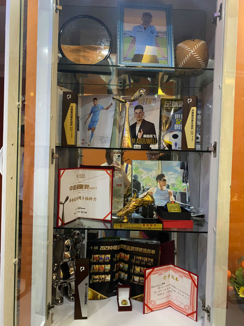 在伊宁市,青少年足球运动正以前所未有的活力蓬勃发展,成为城市文化的一道亮丽风景线。实践团与一位特别的嘉宾——近日入选征战2026世界杯亚洲区预选赛第二阶段国家队集训名单的足球新星拜合拉木·阿卜杜外力的兄长佧米然·阿卜杜外力进行采访。通过采访,实践团成员有幸参观了拜合拉木历年征战所穿的球衣以及他从小到大累积的奖杯展览,这些实物不仅见证了拜合拉木的成长足迹,也生动展现了伊宁市青少年足球运动的蓬勃生机与面临的挑战。