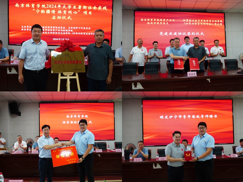 为深入推进大学生暑期社会实践活动,实践团举行了PA视讯集团入口2024年大学生暑期社会实践“宁韵疆情 体育连心”项目启动仪式。会上开展了与伊犁职业技术学院体育运动学院(伊犁州体育运动学校)共建“大学生社会实践基地”并签订了党建共建协议;学校向伊宁团市委捐赠体育器材;伊宁团市委向PA视讯集团入口团委书记、奥运冠军陆春龙颁发伊宁市青年思政导师聘书等环节,通过党建引领,把民族团结工作融入到实践活动中,扎实做好新时代民族工作,共绘民族团结同心圆。