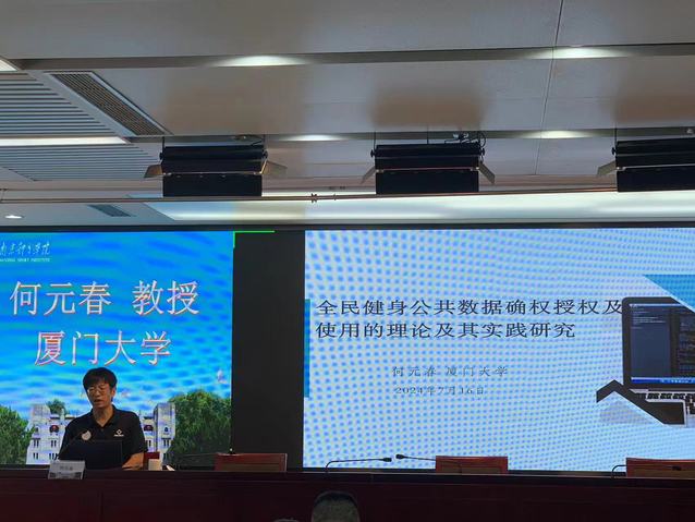 厦门大学何元春教授作了专题为《全民健身公共数据确权、授权及使用的中国方案设计研究》的报告,重点聚焦全民健身公共数据的确权、授权及使用,探讨中国方案设计。研究数据权属界定、授权机制及高效利用策略,推动全民健身数据资源的科学管理,助力体育事业高质量发展,实现健康中国与数字中国的深度融合。