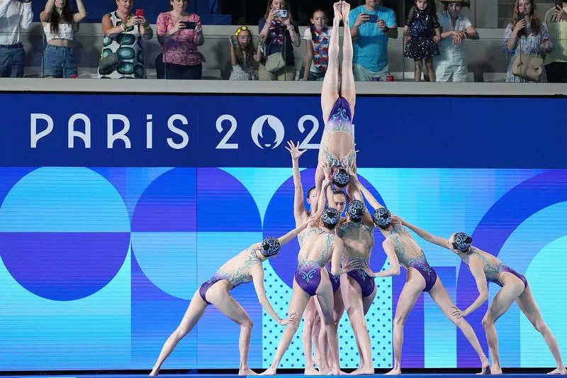 中国花游队摆出埃菲尔铁塔造型致敬巴黎奥运会