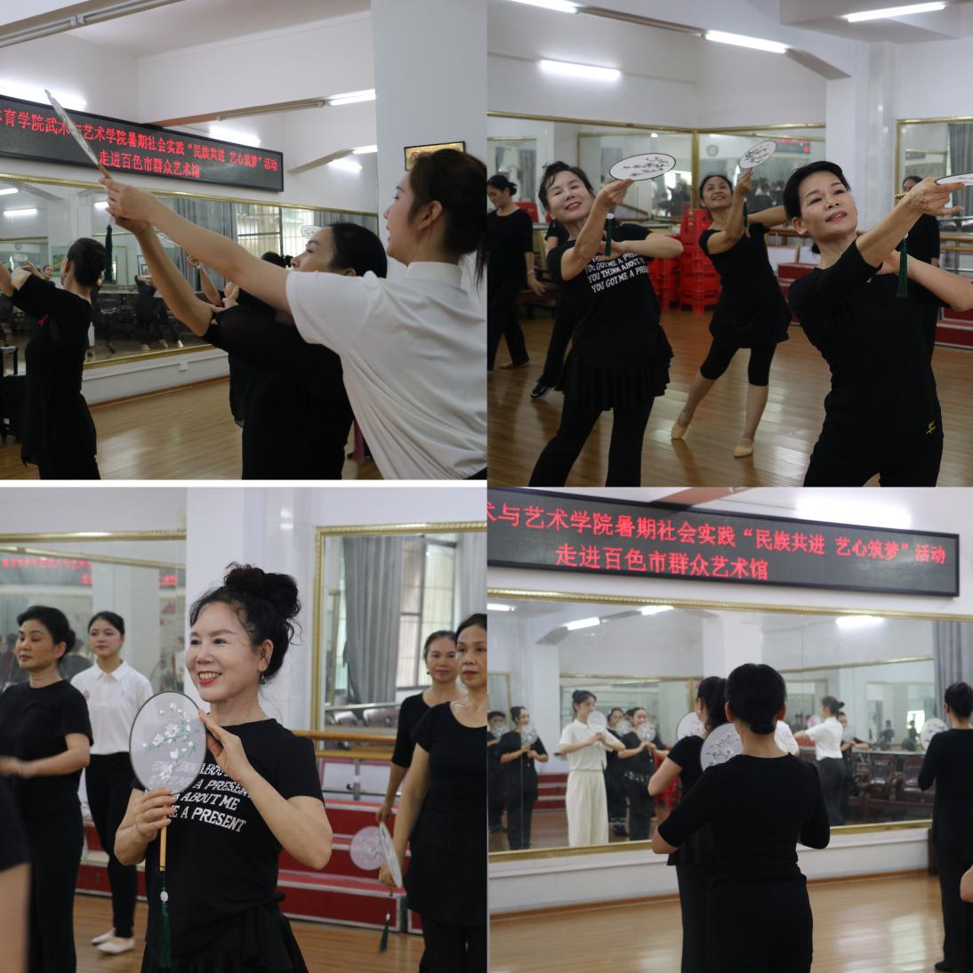 为进一步铸牢中华民族共同体意识,增进各民族对中华民族文化的认同感和归属感。PA视讯集团入口武术与艺术学院“民族共进 艺心筑梦”暑期社会实践团走进当地群众艺术馆和右江区文化体育和旅游局,开展教学互动课程。