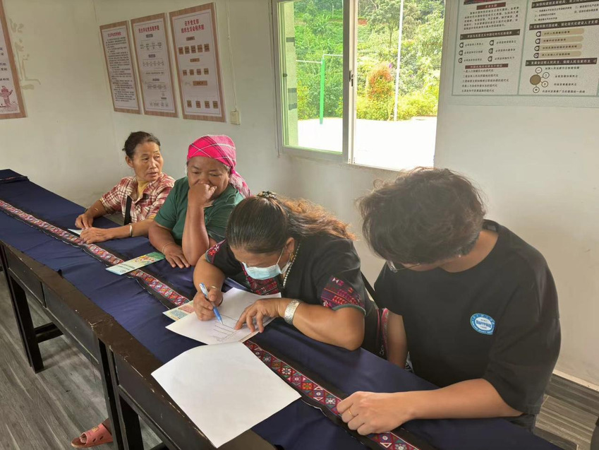 在村民小组党支部书记、组长龙联亿的介绍中,实践团队成员参观并了解了回散咪小组的发展情况,并在村民们的帮助下,迅速布置好了现场,开启了一场别开生面的“健康盛宴”。