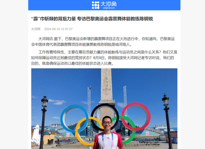 【大河网】“霹”巾斩棘的背后力量 专访巴黎奥运会霹雳舞体能教练陈钢锐
