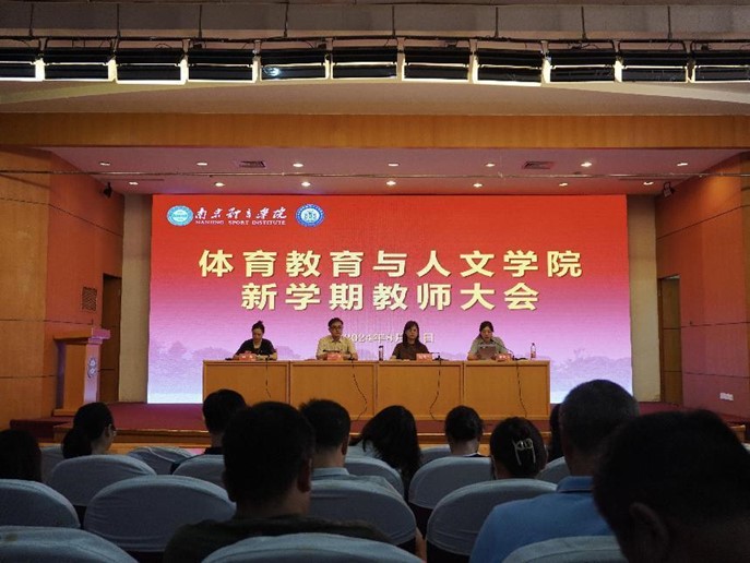 为推进落实新学期各项工作,8月31日上午,体育教育与人文学院在图书馆第一报告厅召开全院教师大会。会议由体育教育与人文学院院长沈鹤军主持,学院党总支书记卢奎、副书记喻菊、副院长康晓磊出席会议,全体教师参加会议。