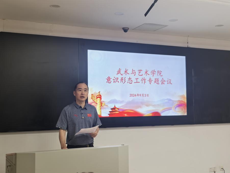 为进一步压紧压实意识形态工作责任,督促武术与艺术学院全体教职工在本职岗位上履责尽职,全面做好新学期开学工作,时刻拧紧意识形态总开关,确保各项工作顺利推进,9月3日下午,武术与艺术学院组织召开意识形态工作专题会议。会议由党总支书记叶瑛主持,全体教职工参加。