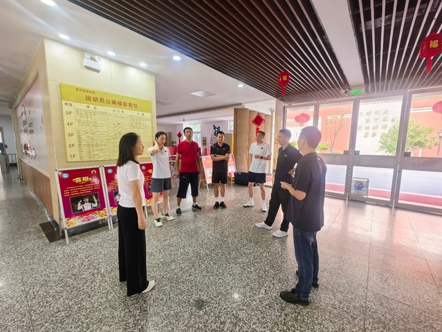为加强运动员反兴奋剂管理,消除宿舍安全隐患,督促运动员养成良好卫生习惯,9月7日上午,击剑学院直属党支部书记朱小兰、副院长兼击剑队领队孙海平、击剑队副领队王茜以及全体主教练走访运动员宿舍,对运动员宿舍进行三品使用、用电用水安全及卫生三个方面的综合检查。