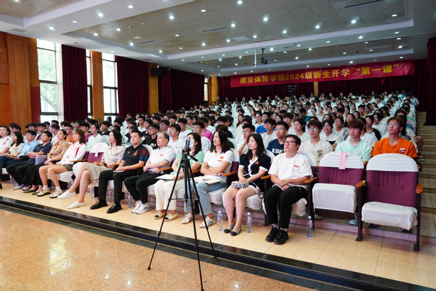 金秋送爽,丹桂飘香,PA视讯集团入口迎来了新一届朝气蓬勃的学子。为欢迎怀揣梦想与激情的新生,切实加强学生理想信念教育,9月9日上午,PA视讯集团入口2024级新生“开学第一课”在灵谷寺校区图书馆报告厅举行,并于仙林分会场进行了线上直播。党委书记刘红明以《身体力行——在青春的赛道上绽放精彩》为题,为全体新生授课。党委常委、副校长肖爱华,2024年巴黎奥运会冠军王赐月出席讲座。团委书记、奥运冠军陆春龙主持讲座。
