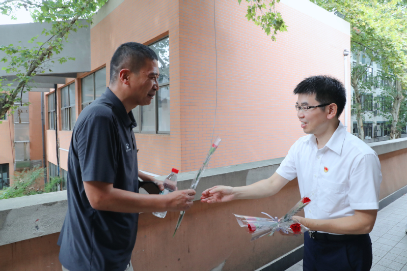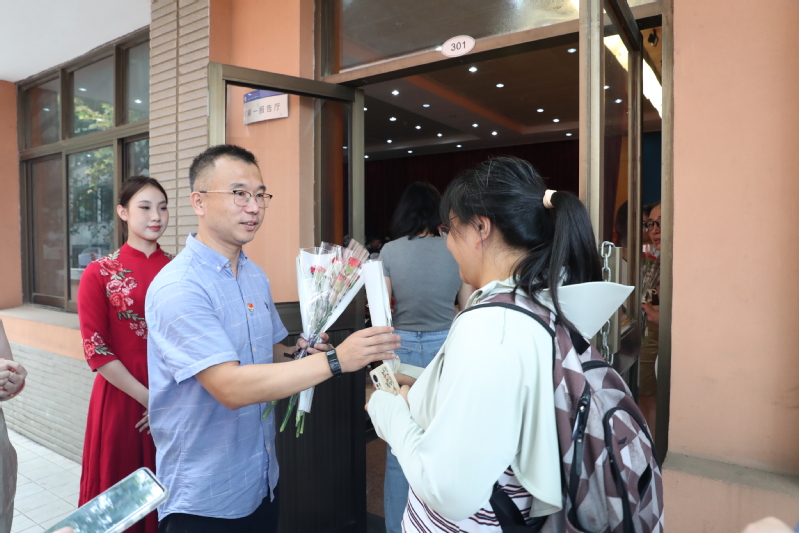 党委副书记兰亚明向教师献花