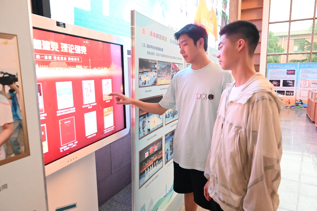四是参观图书馆策划的“南京青奥会十周年暨南体里约、东京、巴黎奥运辉煌成就展”,通过一张张精美的图片、一件件赛事纪念品,让学生领略奥林匹克运动的魅力,感受国家改革发展的成就,学习南体健儿团结拼搏的精神,体悟“严和朴实”的校训与“学训融合、教体相长”的办学理念。
