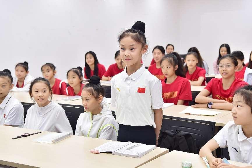 在今年夏天举行的巴黎奥运会艺术体操集体全能决赛中,江苏运动员郝婷携手队友,以总分69.800分的成绩夺冠,拿下中国艺术体操队史上的首枚奥运会金牌,取得了历史性突破。这次分享,郝婷以个人参加的东京奥运会和巴黎奥运会两届赛事经历为依托,向小队员们分享自己的备战经验。