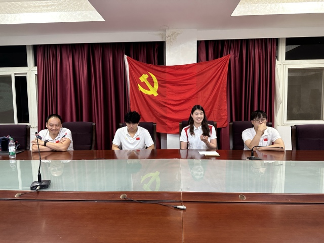 9月13日晚,游泳学院游泳队党支部在运动员公寓二楼会议室举行“追寻冠军足迹 聆听荣耀声音”奥运心得分享会。本次活动邀请了奥运健儿张雨霏、董志豪及参与巴黎奥运会备战的教练员、保障人员现场交流参加奥运会期间的心得体会。游泳学院党总支书记骆晓娟、游泳队党支部全体党员、团员参加活动。会议由游泳队党支部书记孙世昆主持。