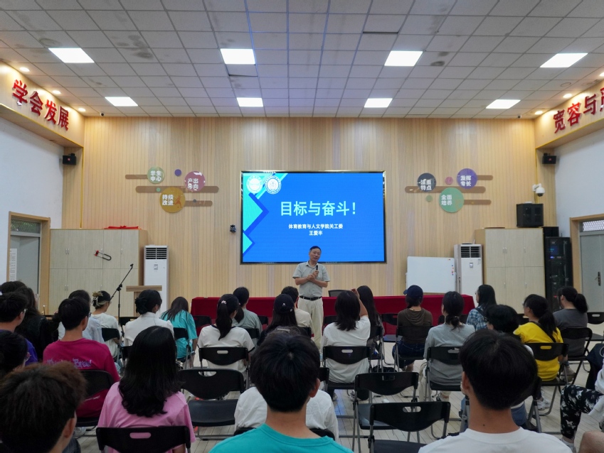 为帮助新生更好地适应大学生活,明确学习目标,规划未来方向,9月12日上午,体育教育与人文学院关工委负责人王爱丰教授为学院2024级本科生新生作了题为“目标与奋斗!”的专题讲座。