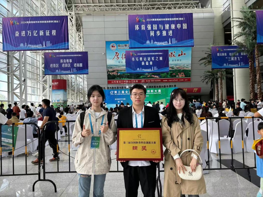9月19-21日,第三届全国体育科技创新大赛决赛在山东省烟台南山国际博览中心举行。运动健康学院“羽动未来”学生团队获得“第三届全国体育科技创新大赛学生体育科技创新组铜奖”的优异成绩。团队由运动健康学院汤强院长、吴晓燕老师、宋燕老师指导,参赛学生包括操越、张思勤、朱琪。