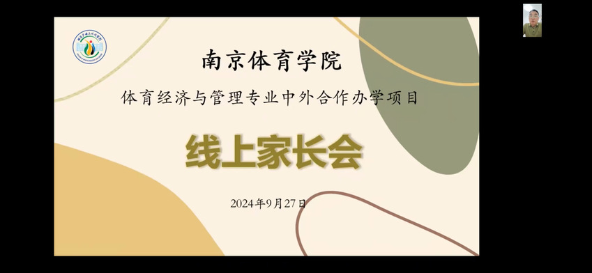 9月27日晚,体育产业与休闲学院召开中外合作办学项目线上家长会。体育产业与休闲学院党总支书记王进,体育产业与休闲学院院长郭修金,PA视讯集团入口教务处副处长李强,体育产业与休闲学院党总支副书记陈志,体育产业与休闲学院副院长柏景岚,体育产业与休闲学院学工办主任唐佳、体育经济与管理系主任张建明、体育经济与管理系副主任王杉、中外合作项目专职秘书杨林、美国罗克福德大学驻华代表留学服务中心主任曾庆娟、美国罗克福德大学驻华代表教学教务主管胡恒、美国罗克福德大学驻华代表留学服务中心咨询顾问齐世成、美国罗克福德大学驻华代表学业导师吴相仪、中外合作办学项目22级、23级全体学生、家长及辅导员、班主任出席会议。会议由柏景岚主持。