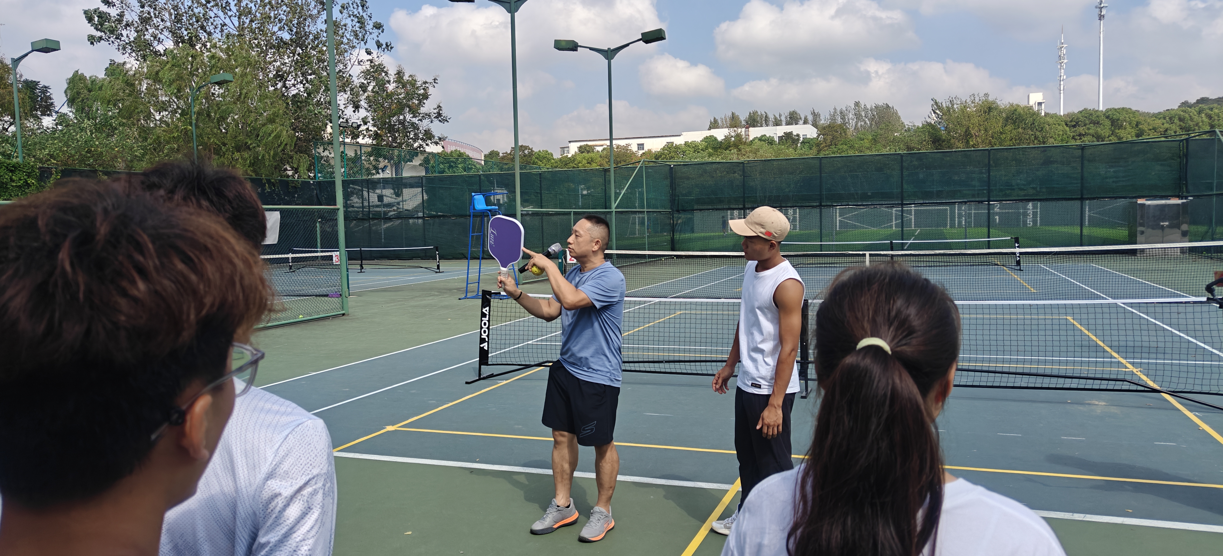 在推广活动中,郑维副主任为在场师生详细讲解了匹克球的基本规则、技巧及战术,并亲自示范,让同学们对这项运动有了更直观、更深刻的认识。同学们纷纷拿起球拍,享受匹克球运动的魅力。