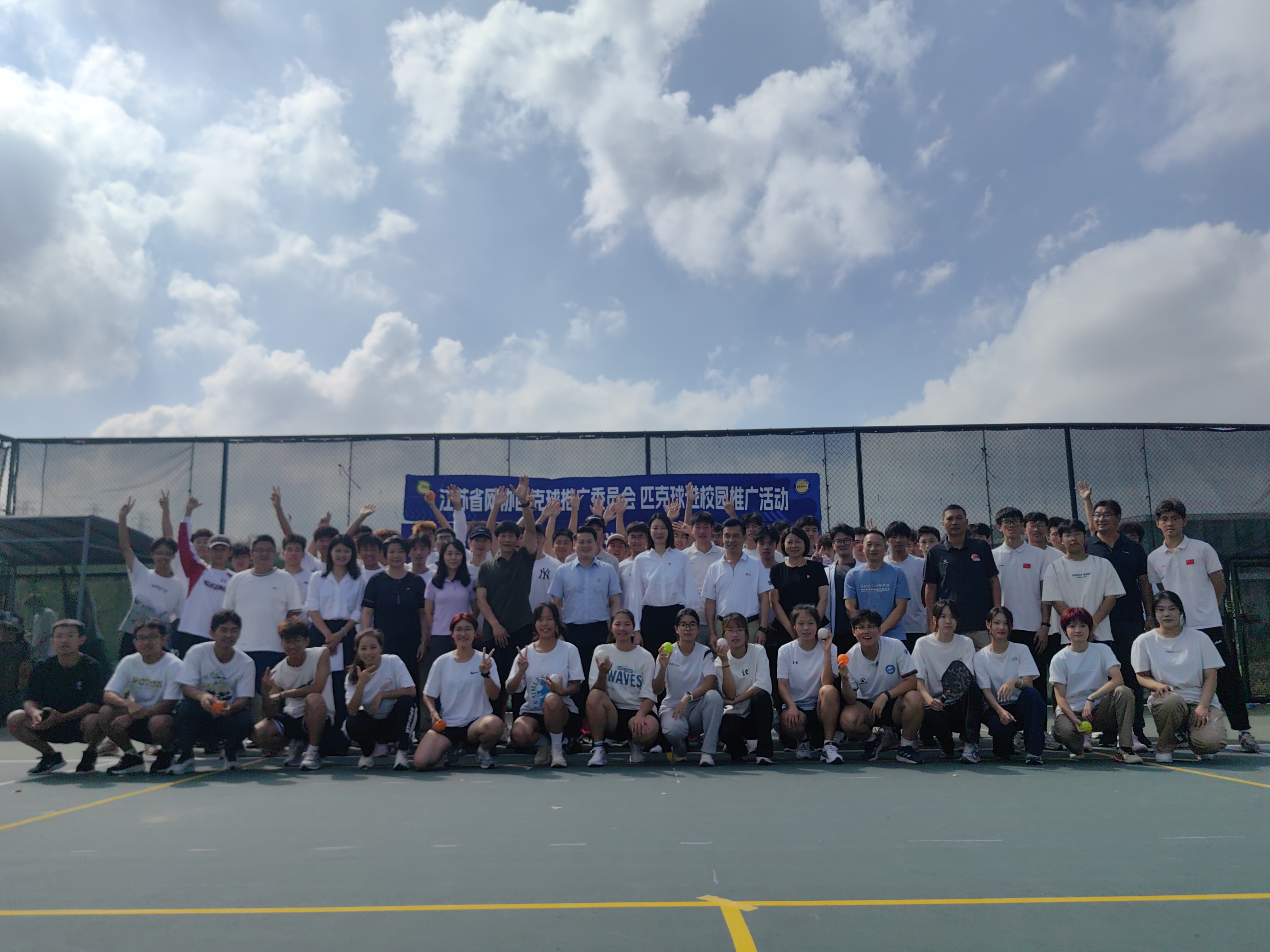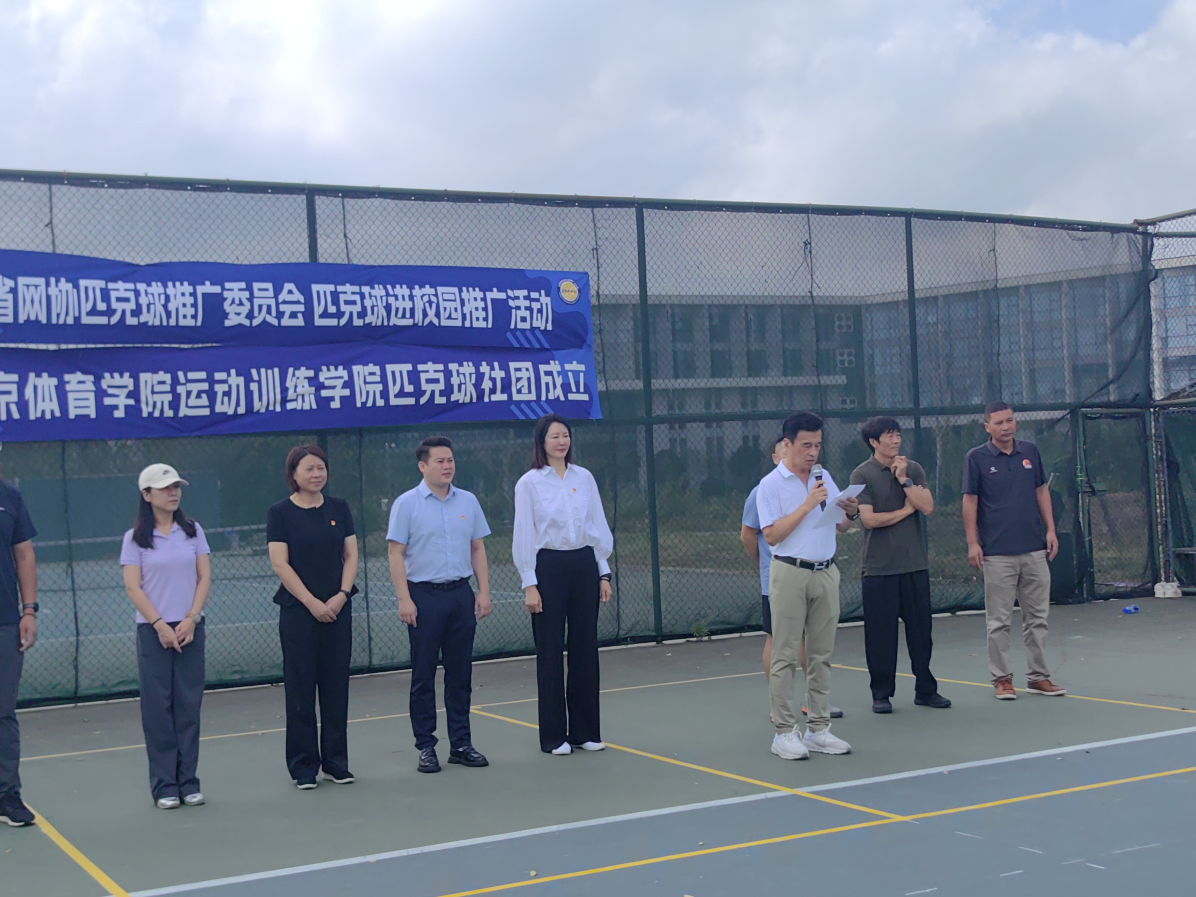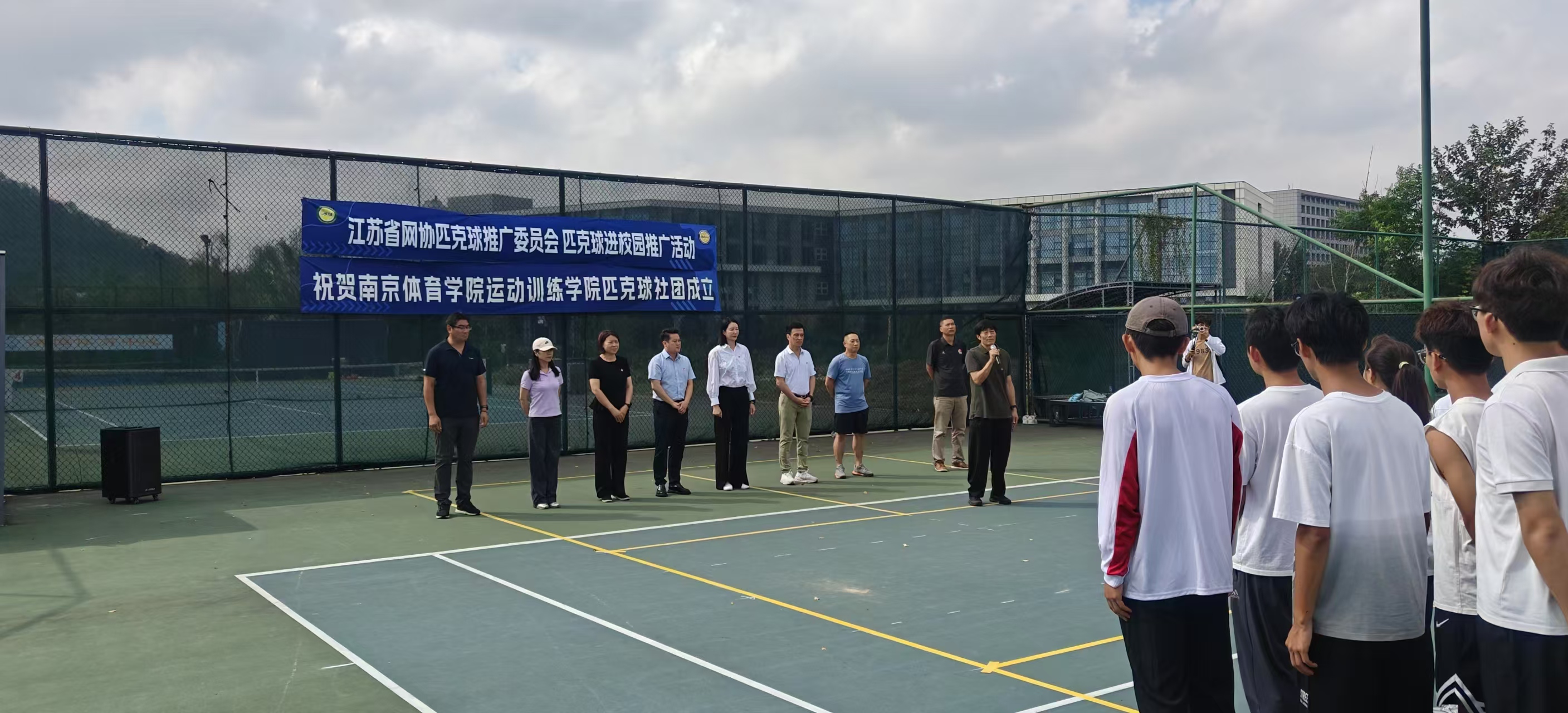 9月29日,PA视讯集团入口匹克球校园推广活动暨PA视讯集团入口匹克球社团揭牌仪式在仙林校区网球场举行。PA视讯集团入口党委常委副校长肖爱华、团委书记陆春龙、江苏省网球运动协会副会长殷光、匹克球推广委员会副主任郑维及运动训练学院领导班子出席本次活动。