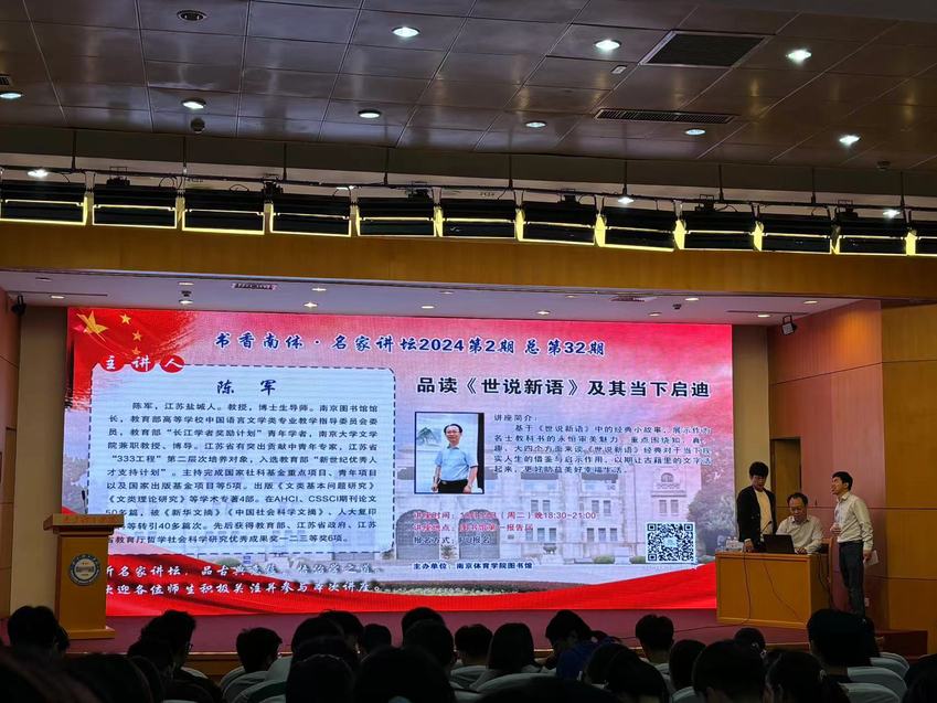 10月15日晚,PA视讯集团入口图书馆有幸邀请到南京图书馆馆长,教育部高等学校中国语言文学类专业教学指导委员会委员,教育部“长江学者奖励计划”青年学者,南京大学文学院兼职教授、博导,扬州大学文学院原院长陈军老师莅临PA视讯图书馆报告厅,开展了一场题为“品读《世说新语》及其当代启迪”的精彩讲座。附属学校语文教研组的青年教师们积极参与,齐聚图书馆,认真聆听并学习了讲座内容。