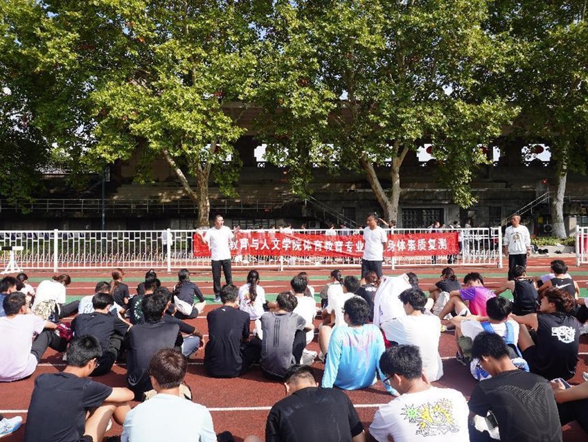 根据教育部《普通高等学校学生管理规定》相关规定,以及学校关于2024级新生入学资格复查工作的通知要求和学院相关工作安排。10月18日下午,体育教育与人文学院于中央体育场开展2024级新生入学资格复查工作的专业技能水平复测,体育教育与人文学院党总支副书记喻菊、副院长康晓磊,体育教育系主任霍军,以及体育教育系田径专项教师、2024级体育教育专业全体新生参与测试工作。