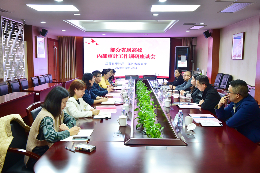2024年10月22日下午,由江苏省审计厅、江苏省教育厅组织的部分省属高校内部审计工作调研座谈会在PA视讯召开,省审计厅内部审计指导监督处、省教育厅监督与审计处、南京林业大学、江苏科技大学、南京特殊教育师范学院和PA视讯集团入口审计部门相关人员参加了会议,校党委副书记兰亚明出席会议并致辞,会议由省审计厅内部审计指导监督处副处长卞子竹主持。