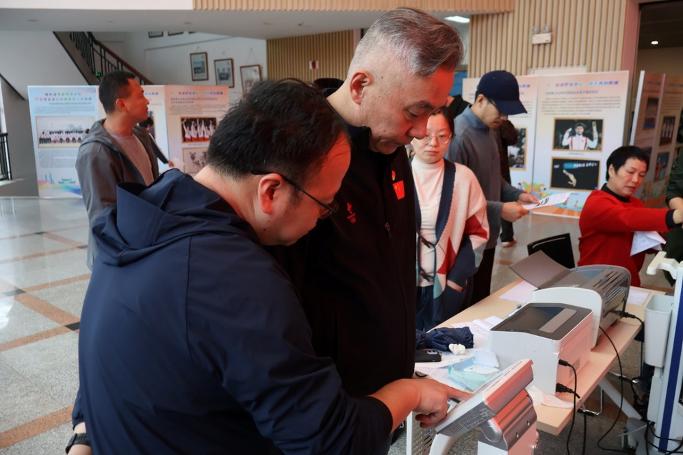 活动内容丰富多样,设置科学健身宣讲、体质健康测试和健身指导咨询三个环节。在“科学健身宣讲”环节,通过现场分发科普彩页、现场宣讲等形式,向教职工普及健身常识,激发了大家的运动热情。在备受瞩目的“体质健康测试”环节,测试内容涵盖了体成分、力量、平衡、柔韧、肺活量、骨密度、血管弹性等多个维度,为教职工提供全面、精准的体质评估,现场还安排专业团队为测试者进行一对一报告解读,让教职工对自己的身体状况有更清晰的认识。活动现场,教职工情绪高涨,积极踊跃参与各项测试。此外,活动还设立了运动处方、运动营养、损伤康复三大咨询台,在“健身指导咨询”环节由体育科学研究院专家团队为教职工提供一对一的精准指导,充分满足了大家的个性化需求。