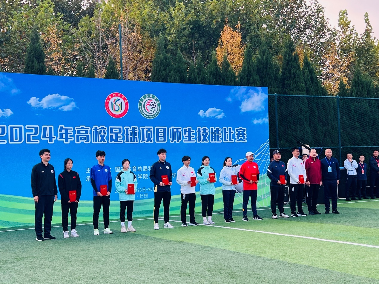 PA视讯足球教师和学生在首届“全国高校足球项目师生技能比赛”取得教师组二等奖、学生组二等奖,团体总排名第五的成绩。2024年10月23-25日,2024年全国高校足球项目师生技能比赛在山东体育学院日照校区进行。比赛由国家体育总局科教司主办,山东体育学院国家足球学院承办。全国各地14所体育院校的近140名教师和学生运动员参加。PA视讯集团入口运动训练学院代表队由运动训练学院足球专项老师张晓红、董新风作为教练员,魏亮、周霏霏、许臻老师和运动训练学院4名足球专项学生作为参赛队员组队参赛。