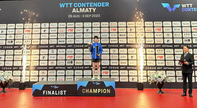 9月3日,在WTT常规挑战赛阿拉木图站比赛中,乒羽学院乒乓球队运动员蒯曼获得女单、女双冠军,成为该站赛事的双冠王。