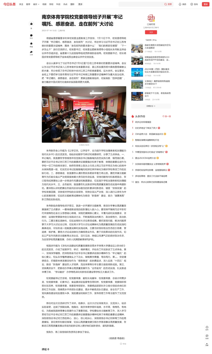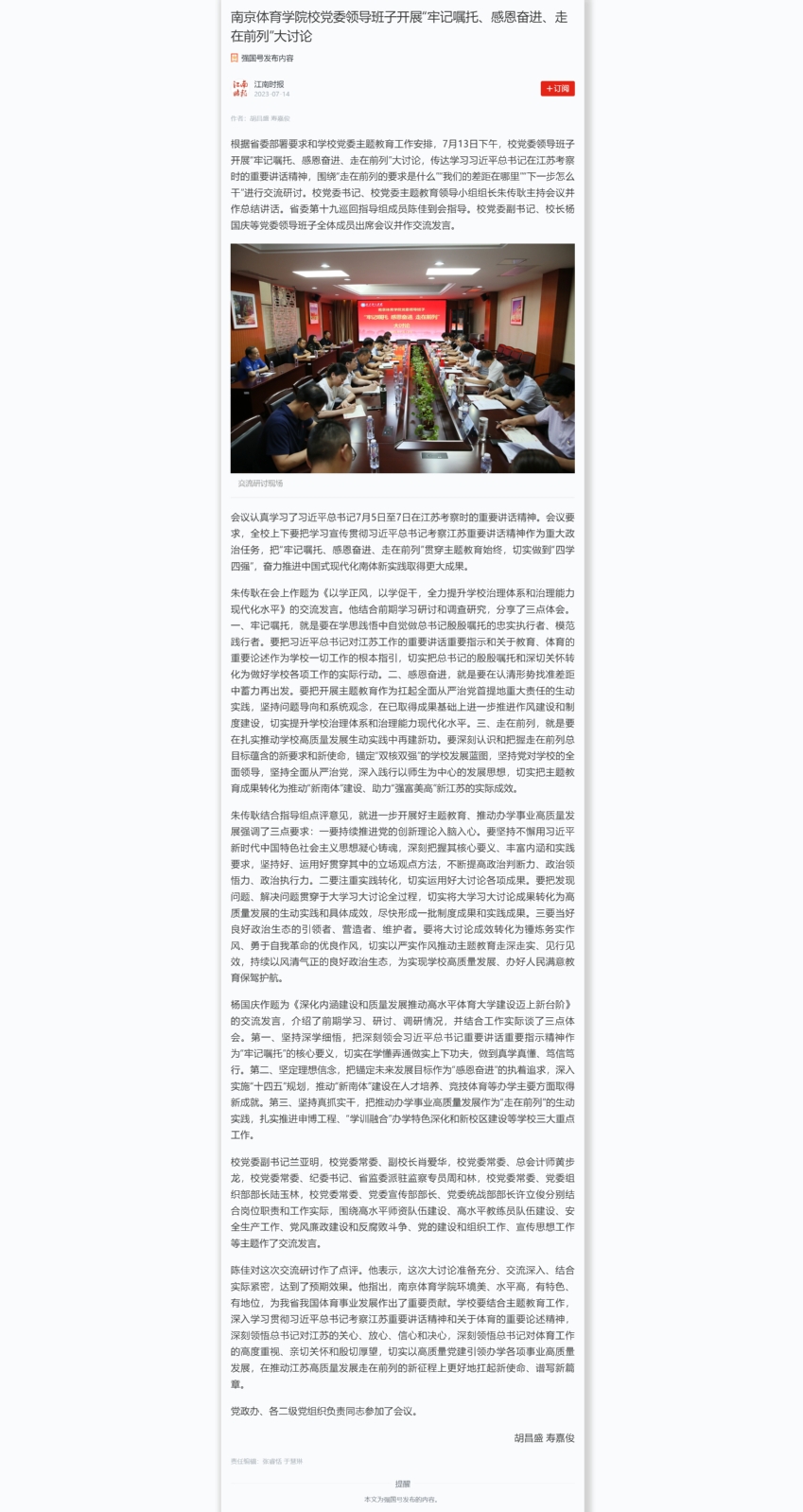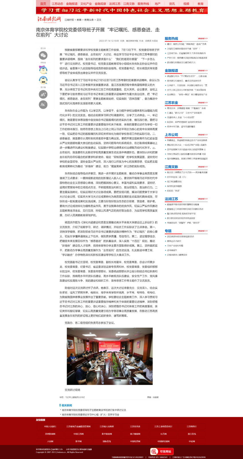 江南时报网:PA视讯集团入口校党委领导班子开展“牢记嘱托、感恩奋进、走在前列”大讨论