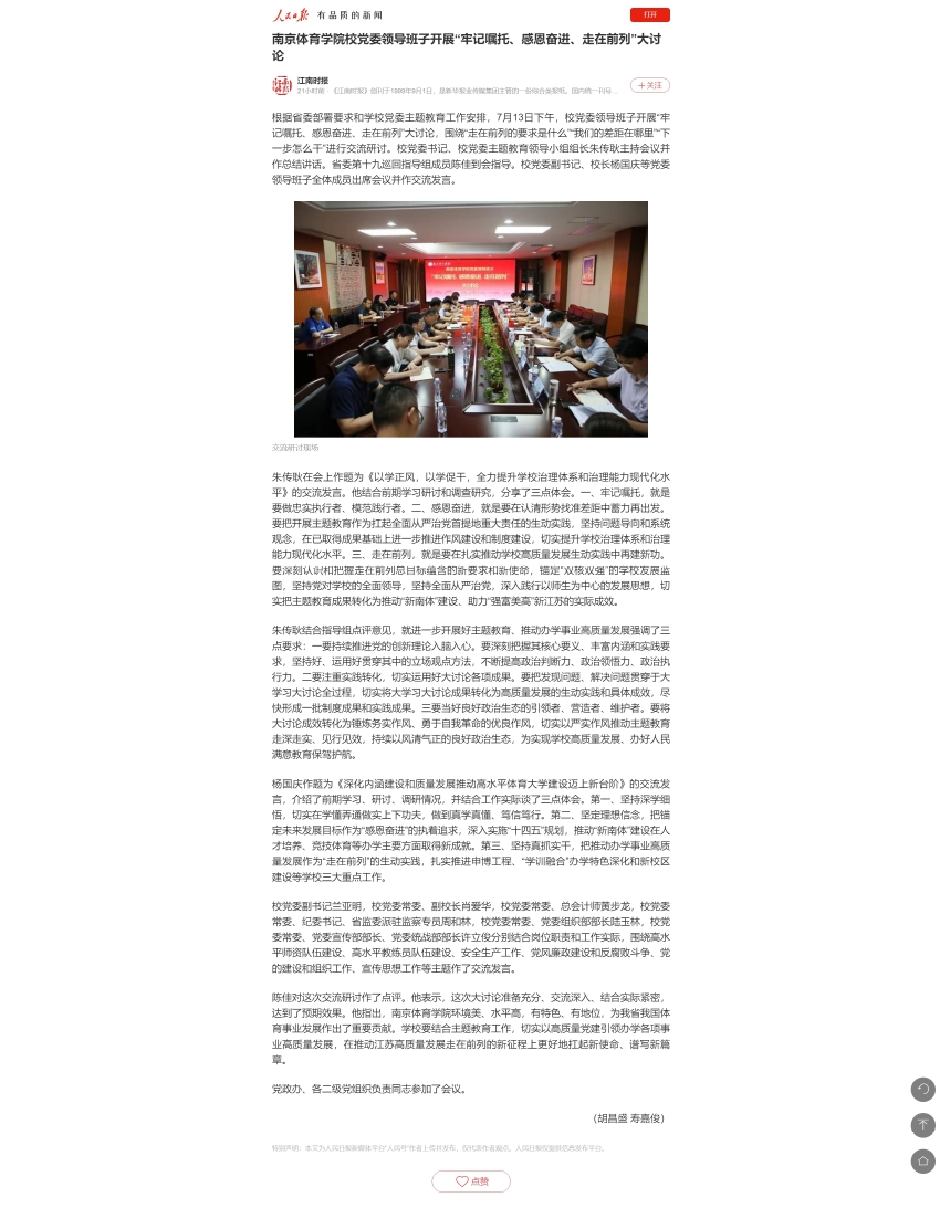人民日报网:PA视讯集团入口校党委领导班子开展“牢记嘱托、感恩奋进、走在前列”大讨论