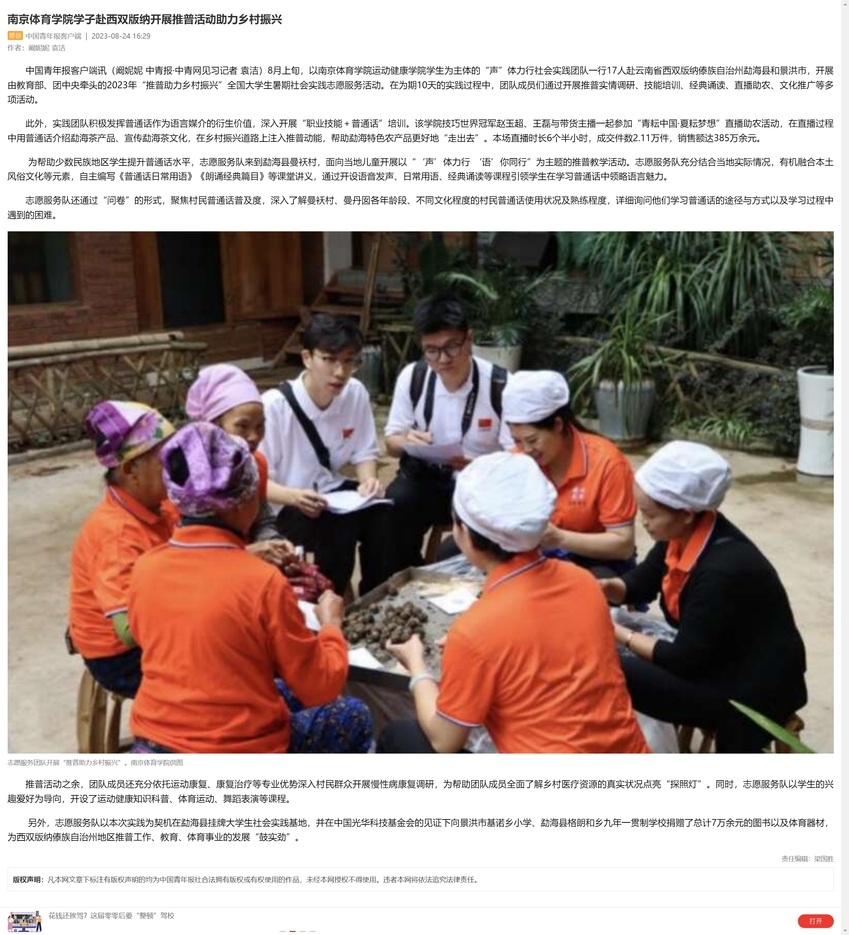 中国青年报客户端:PA视讯集团入口学子赴西双版纳开展推普活动助力乡村振兴