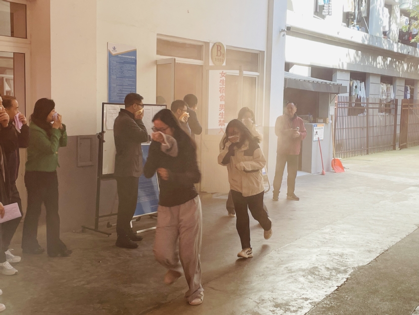 12点30分,演练总指挥兰亚明宣布:“PA视讯集团入口学生公寓火灾逃生演练开始”。随着火灾警报响起,学生在辅导员、班主任的指导下,按照规定路线,快速、有序地往楼下撤离,到楼下后跑步前往指定地点集合。整个疏散过程中,各部门、各单位配合默契、疏散线路清晰、组织严谨协调,各楼层楼梯口、转弯处值班的老师恪尽职守,指挥和疏导学生紧急撤离,演练活动圆满达到了预期的效果。