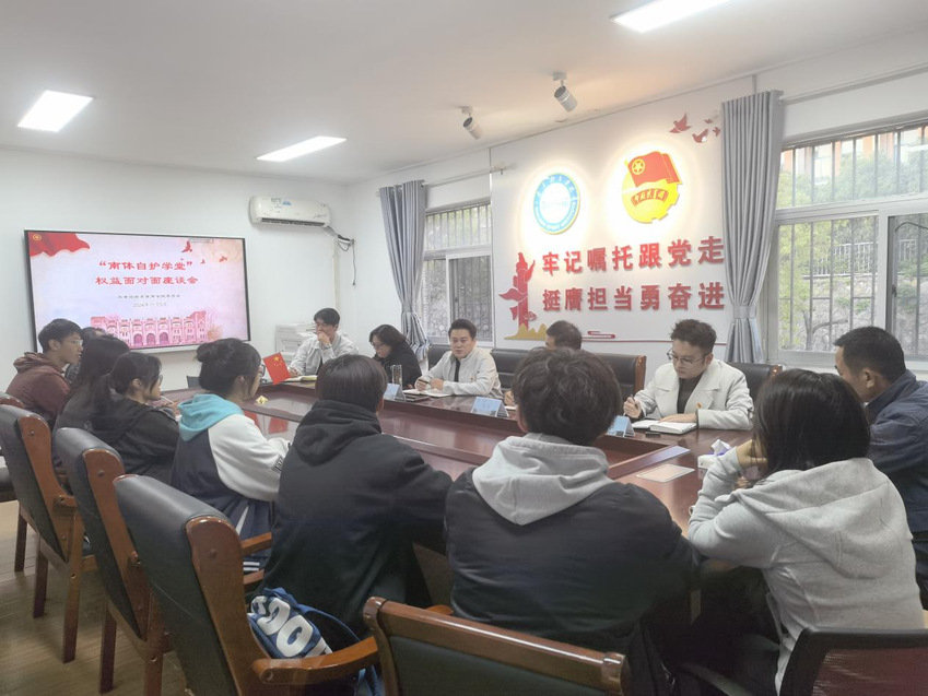 校团委为进一步维护学生权益,全面了解学生在学习、生活等方面的需求,联合相关职能部门提升服务水平,11月5日召开了“南体自护学堂”权益面对面座谈会,校团委书记陆春龙,校后勤处副处长杨宁欣、王彤,相关职能部门负责人以及各院系学生代表参加了此次座谈会。