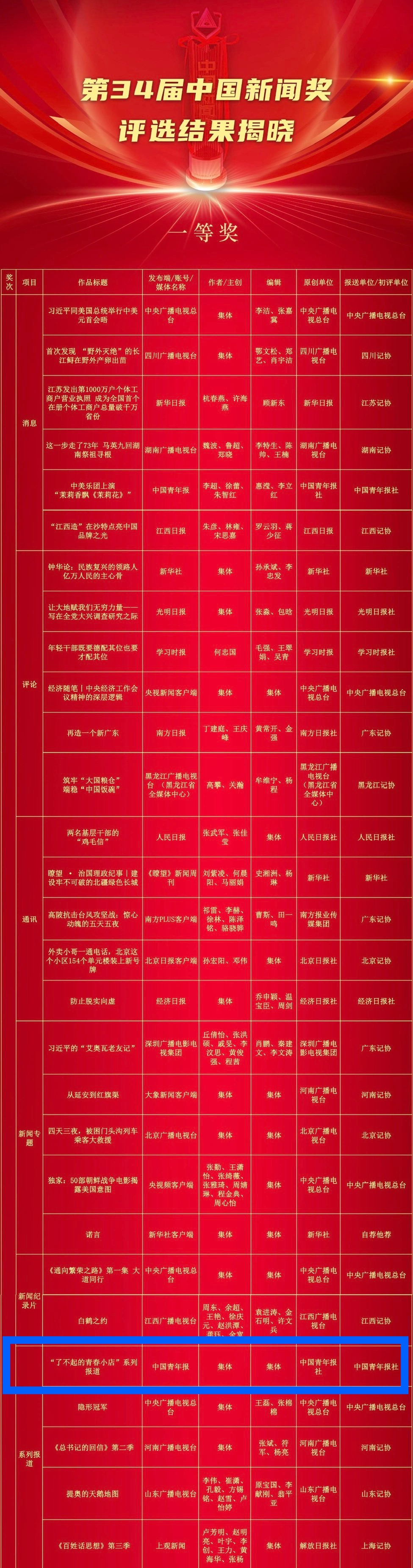 “了不起的青春小店”系列报道荣获第34届中国新闻奖一等奖