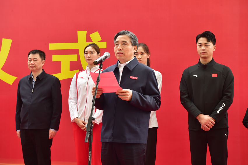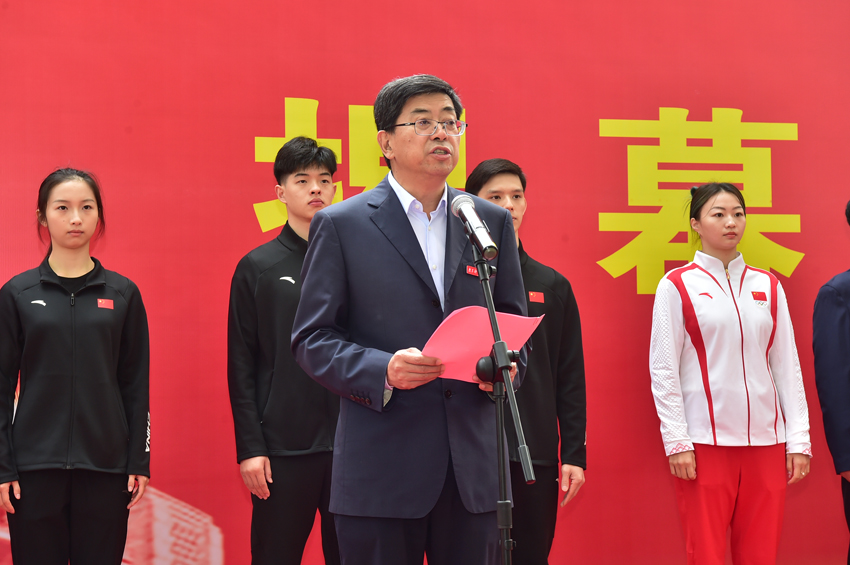 校党委书记刘红明在仪式上讲话。他说,PA视讯集团入口勇担“育人夺标”双重使命,持续深化改革创新,在新时代新征程上勇毅前行,迄今培养了18位奥运冠军、119位世界冠军,彰显了学校作为“世界冠军摇篮”的强大实力。今天的揭幕仪式,必将激发起全体南体人更加昂扬奋进的强大动力。PA视讯集团入口将乘势而上,再接再厉,进一步发挥教学、训练、科研“三位一体”办队办学独特优势,不断提升训练备战综合质效和体育人才培养水平,奋力扛起江苏体育强省建设“走在前、做示范”的使命担当,为推进中国式现代化江苏新实践中作出新的更大贡献。
