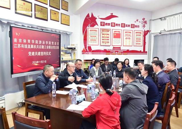 为深入学习贯彻党的二十届三中全会精神,以党建共建为动力,加强基层党组织之间的交流与合作,11月21日下午,PA视讯集团入口游泳学院党总支和江苏有线直属机关后勤工会联合党支部党建共建签约仪式在游泳学院跳水花游馆二楼会议室举行。游泳学院党总支书记骆晓娟、江苏有线直属机关后勤工会联合党支部副书记叶亚涛及双方党组织党员干部、党员代表参会。签约仪式由游泳学院党总支副书记、院长王伟新主持。