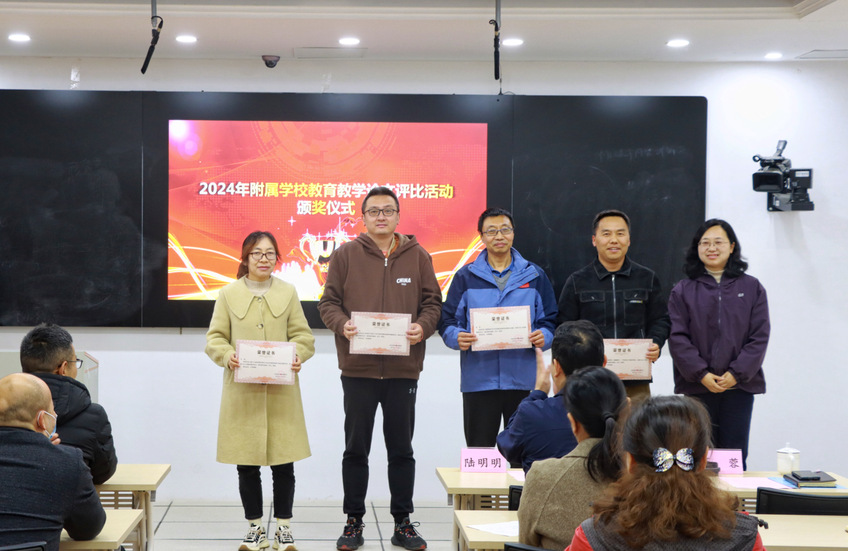 随后,与会专家为2024年附属学校教育教学论文评比获奖教师颁奖,并与全体教师合影留念。