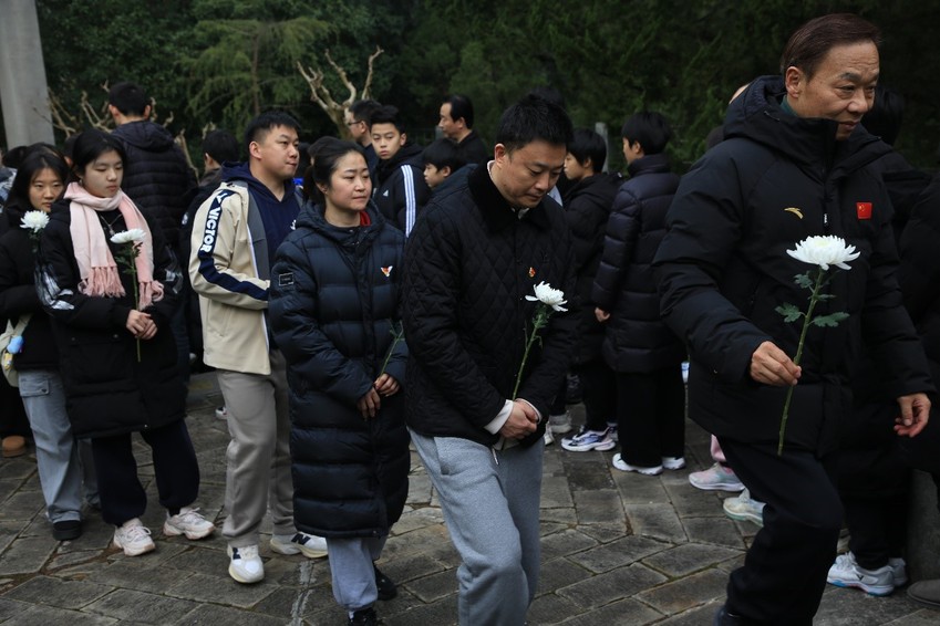 校党委副书记兰亚明指出,国家公祭日是对历史的铭记,更是对未来的警醒。我们必须铭记这段苦难历史,牢记使命,为建设体育强国、构建人类命运共同体、实现中华民族伟大复兴的中国梦贡献力量。乒羽学院关工委执行副主任凌波简要介绍了东郊丛葬地的有关情况,详细讲述了那段残酷的历史真相。他强调,青年一代要珍惜当下,挺膺担当,将竞技体育发扬光大,为国家争光。