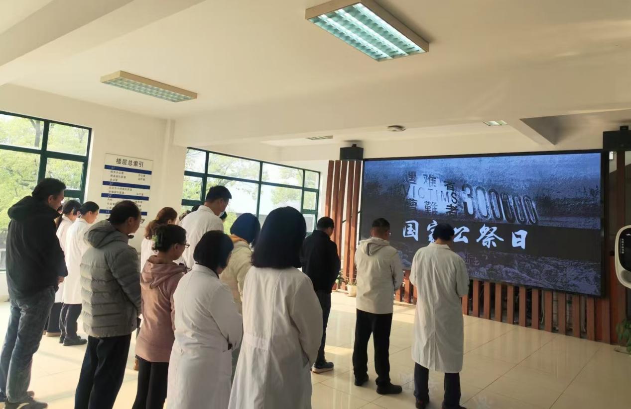 上午十点整防空警报响起,医院大厅内,全体人员肃立默哀,向南京大屠杀中惨遭侵华日军屠杀的 30 万同胞致以沉痛的哀悼。默哀过程中,现场一片寂静,每个人都沉浸在对历史的追忆和对遇难者的深切缅怀之中,心中涌动着无尽的悲痛与愤慨。