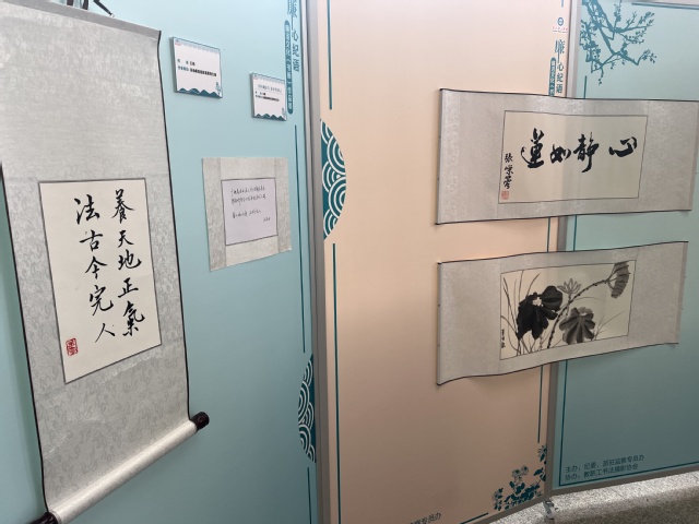 展出中,《<中国共产党纪律处分条例>宣传挂图》用图文并茂的形式对《中国共产党纪律处分条例》作了生动、细致的阐释,让参观者入脑入心印象深刻。廉洁文化书画作品前,参观者驻足品鉴,一幅幅书画作品彰显了PA视讯党风廉政建设工作的决心,渲染了浓厚的廉洁文化宣传氛围,体现了师生党风廉政建设教育成果。入选作品展的支部党员王鸿、张嵘蓉向大家分享作品创作及廉洁文化学习心得。