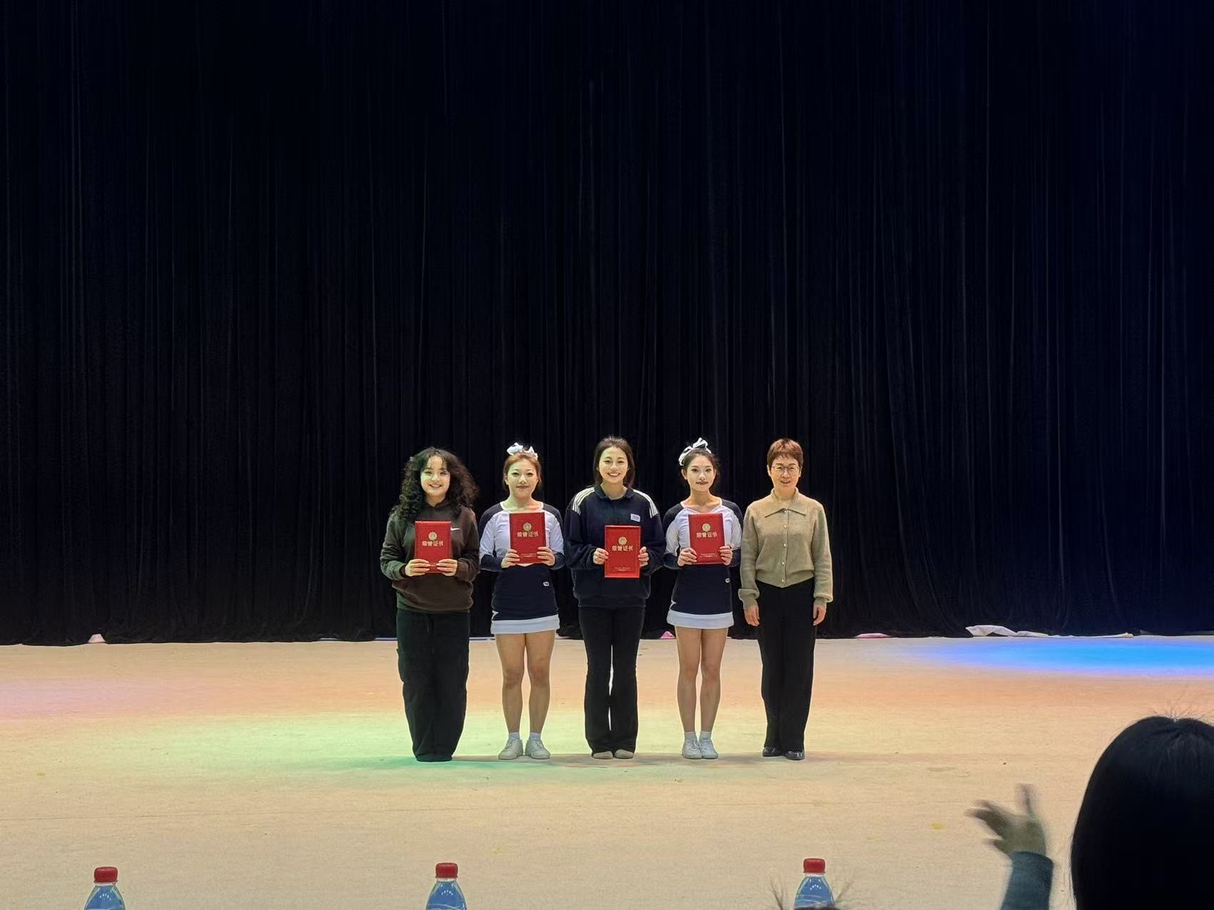我院吴汶轩、卢春雨、杨琪、刘慕熹四名学生被中国蹦床与技巧协会授予全国啦啦操“四好运动员”称号。李晨硕、窦晨曦、仲夏楠荣获院级“四好运动员”称号;杜子梦、许何精一、李鼎硕三名同学荣获院级“品德好”称号;王雅轩、盛思懿、赵甜甜三名同学获得荣获院级“学习好”称号;赵烁、吴嘉萱、李雯倩三名同学获得荣获院级“技术好”称号;艾可、于璐、刘艺加三名同学获得荣获院级“气质好”称号。