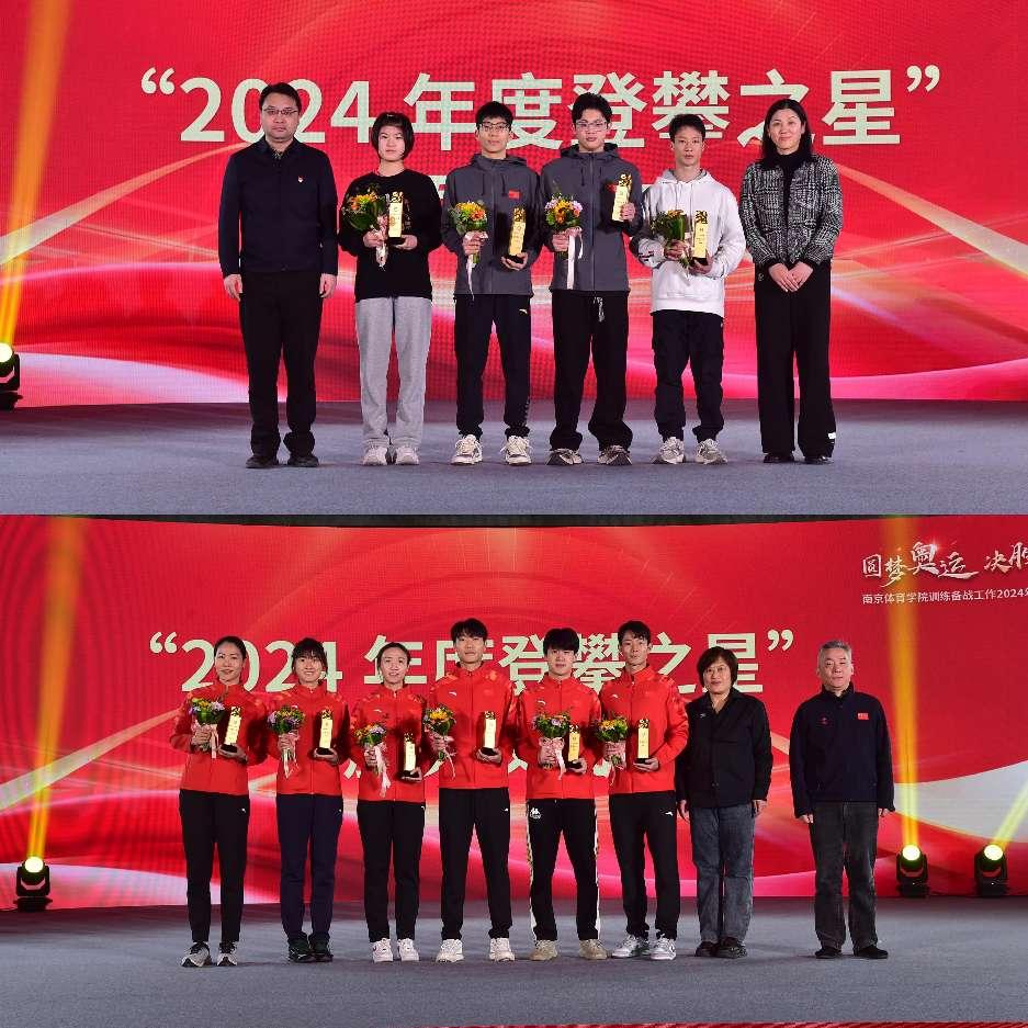 颁奖仪式上,校领导和各市体育局领导分别向王赐月、郝婷、王梓赛等人颁发了“2024年度奥运之星”奖,向王芳、李莉颁发了“2024年度奥运会突出贡献教练员”奖,向胡俊雄等16名教练员颁发了“2024年度训练备战工作突出贡献教练员”奖,向董志豪等20名运动员颁发了“2024年度璀璨之星”奖,向钱佳睿等19名运动员颁发了“2024年度登攀之星”奖。