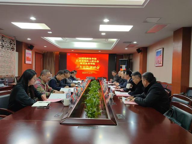 江苏省残联宣传文体处处长范斌、人文体育指导中心主任陈海峰、宣传文体处三级调研员余汛,香港伤残人体育协会总干事吴曙明,党政办副主任、合作发展处副处长苏阳,体育科学研究院副院长孙强,孤独症运动干预研究团队成员董晓晓等参加会议。