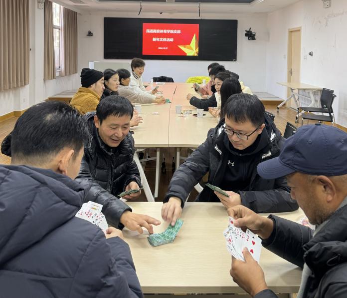 总结会后,与会会员们组织开展同心同乐掼蛋比赛,通过切磋棋牌技艺的方式增进会员之间的交流与协作,进一步提升支部的凝聚力和向心力。活动中大家纷纷表态,新的一年民进南体支部会继续发扬“严和朴实”的南体精神,团结协作、努力拼搏,为建设“特色鲜明、走在前列”的高水平体育大学和江苏体育事业高质量发展贡献自己的一份力量!