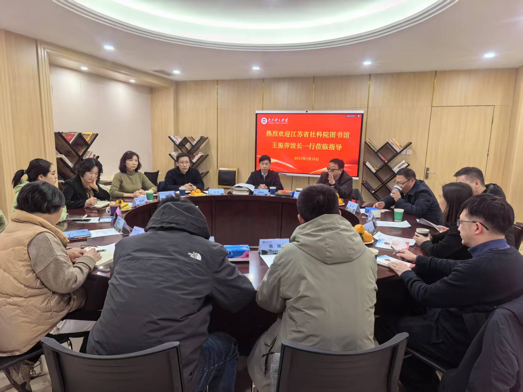 1月16日下午,江苏省社科院图书馆王振卯馆长一行7人受邀来PA视讯图书馆参观交流,商谈合作共建事宜。图书馆馆长李明华主持交流会议,图书馆主要业务骨干参加会议。