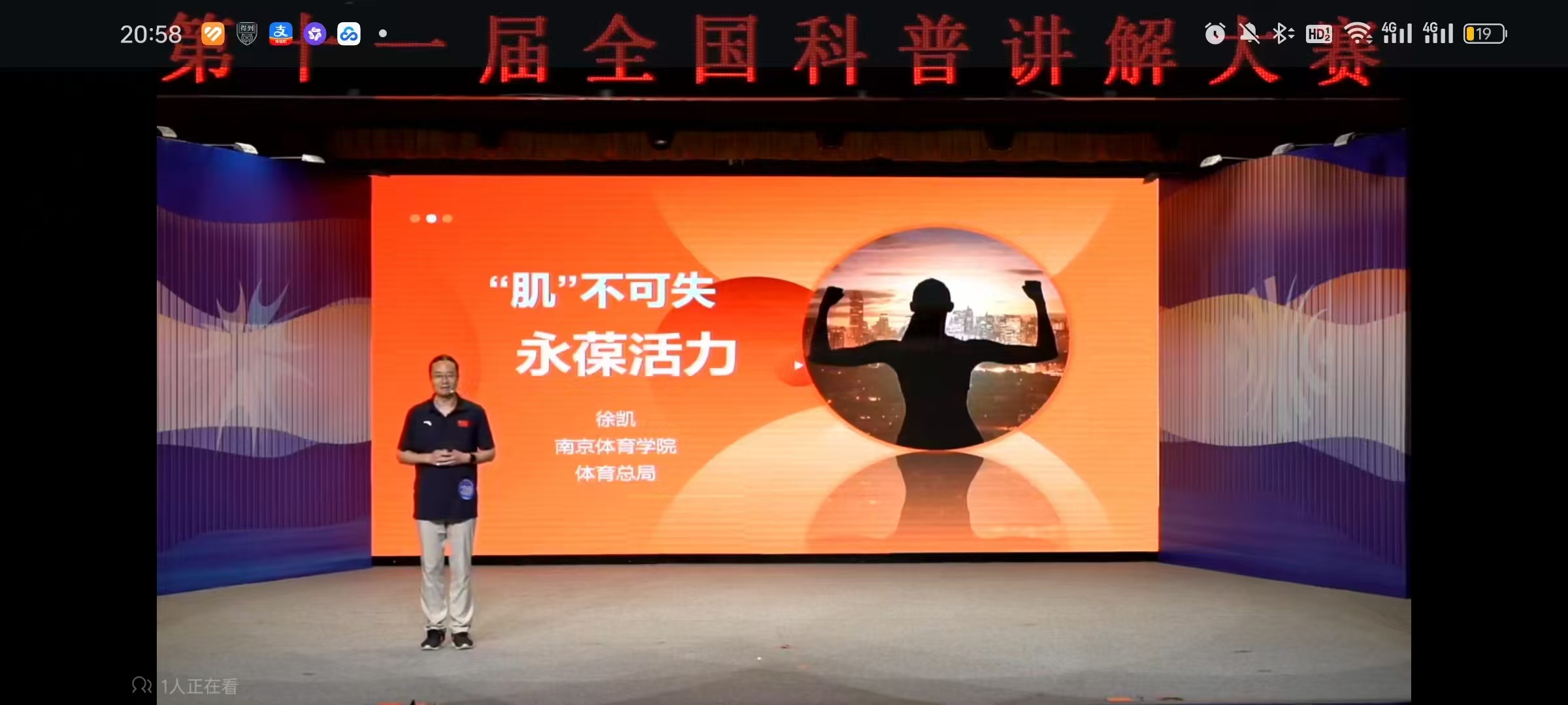 全国科普讲解大赛是由国家科技部主办,全国范围最大、水平最高、代表性最强、最具权威性的科普讲解比赛,大赛创办于2014年,迄今已举办十一届。PA视讯高度重视体育科普工作,积极组织、精心选拔,经过紧张激烈的角逐,徐凯老师在第三届全国体育科普讲解大赛中斩获第一名,经国家体育总局推荐,获得进入第十一届全国科普讲解大赛的比赛资格。比赛中,徐凯老师以“肌不可失,永葆活力”为主题,通过生动形象的语言,深入浅出地讲解了骨骼肌的重要价值以及通过科学运动保持肌肉力量的有效方式。徐凯老师有趣的讲解和专业的知识,引起了现场观众的浓厚兴趣,得到了评委们的一致肯定。