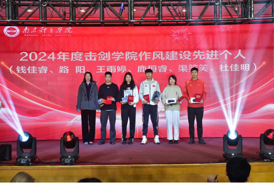 大会伊始,朱小兰在致辞中代表击剑学院向长期以来关心支持学院发展的各级领导、同事、家属表示诚挚的感谢,并致以美好的新年祝福。她指出,2024年,击剑学院在校党委的坚强领导下,以新时代中国特色社会主义思想为指导,紧密围绕学校优秀运动队纪律作风建设工作要求,紧密联系思想和训练实际,以改进队风、训风、学风、赛风为主线,转变观念,规范行为,不断提高学院训练比赛水平。为表彰先进,激励士气,击剑学院综合考量队员一年来的训练、比赛以及冬训期间的表现,评选出钱佳睿、路阳、王雨婷、鹿恒睿、渠笑笑、杜佳明6位运动员为“作风建设先进个人”。