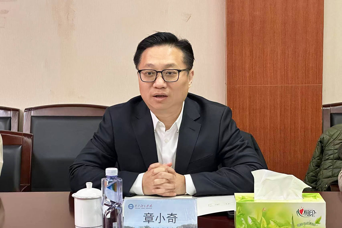 交流座谈会上,刘红明代表学校向章小奇一行的到访表示热烈的欢迎,对南京体育产业集团长期以来给予学校的关心和支持表示感谢。他详细介绍了学校办学基本情况。他指出,南体办学历史悠久、文化底蕴深厚、地理位置优越、学科门类齐全,自1956年建校以来,勇担立德树人和育人夺标的双重使命,凝练构建了教学、训练、科研“三位一体”的办学模式,先后培养了18位奥运冠军、120位世界冠军和数以万计的高水平体育专业人才,被誉为“世界冠军的摇篮”“体教融合的典范”。目前,学校正沿着第九次党代会规划的目标路径,开拓创新、锐意改革,为建设“特色鲜明、走在前列”的高水平体育大学而努力奋斗。他表示,双方前期进行了多次交流沟通,建立了良好的合作基础,在科研成果转化、产业基地建设、人才培养和体育相关品牌打造等方面取得了显著成果。希望双方以本次交流为契机,在前期友好合作的基础上,以体育产业为依托,以体育新质生产力为驱动,探索推进“1+N+1”合作模式,找准合作共赢的切入点和结合点,努力碰撞出新的火花、谋划出新的载体、达成新的合作意向、产生新的合作成果,推动更多合作项目落地,更好助力“强富美高”新江苏现代化建设。