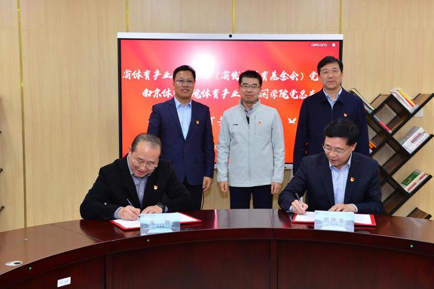 会上,在校党委副书记兰亚明、省体育局第五党支部书记、经济处处长王峰,PA视讯集团入口党委常委、组织部部长殷怀刚三位领导的共同见证下,体育产业与休闲学院党总支副书记、院长郭修金与省体育产业指导中心支部书记、副主任(主持工作)吴翔共同签署了《党支部共建协议》。签约仪式后,与会人员就进一步深化合作进行了研讨。
