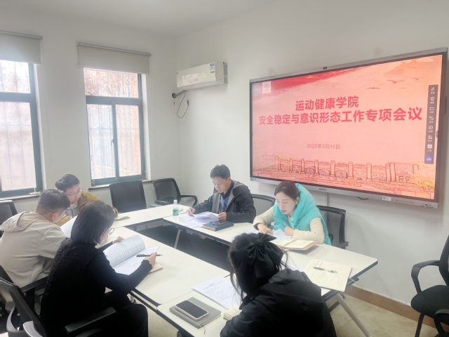 3月11日,运动健康学院召开安全稳定与意识形态专项会议,部署新学期安全稳定暨意识形态工作任务,学院领导班子成员、各系(办)主任参加会议,会议由党总支副书记阚妮妮主持。