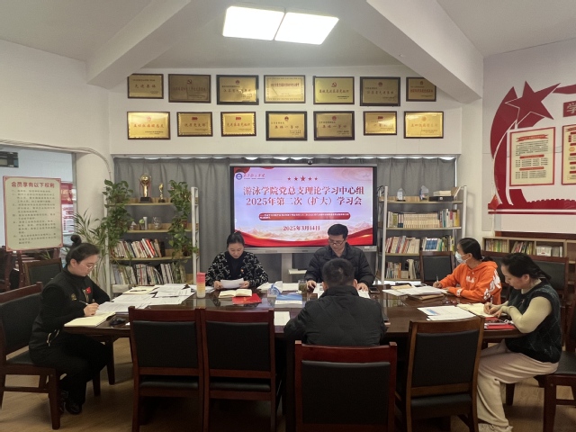 3月14日上午,游泳学院党总支在跳水花游馆二楼会议室召开2025年理论学习中心组第二次(扩大)学习会,专题传达学习全国两会精神。会议由学院党总支书记骆晓娟主持,全体管理干部参加学习。