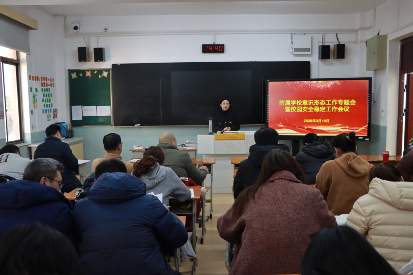 3月18日下午,附属学校组织召开了意识形态专题会暨校园安全稳定工作部署会议,全体教职工参加会议。会议由附属学校党支部副书记、副校长王蓉主持,重点围绕意识形态责任落实、校园安全稳定、师德师风建设及近期工作进行了详细部署。